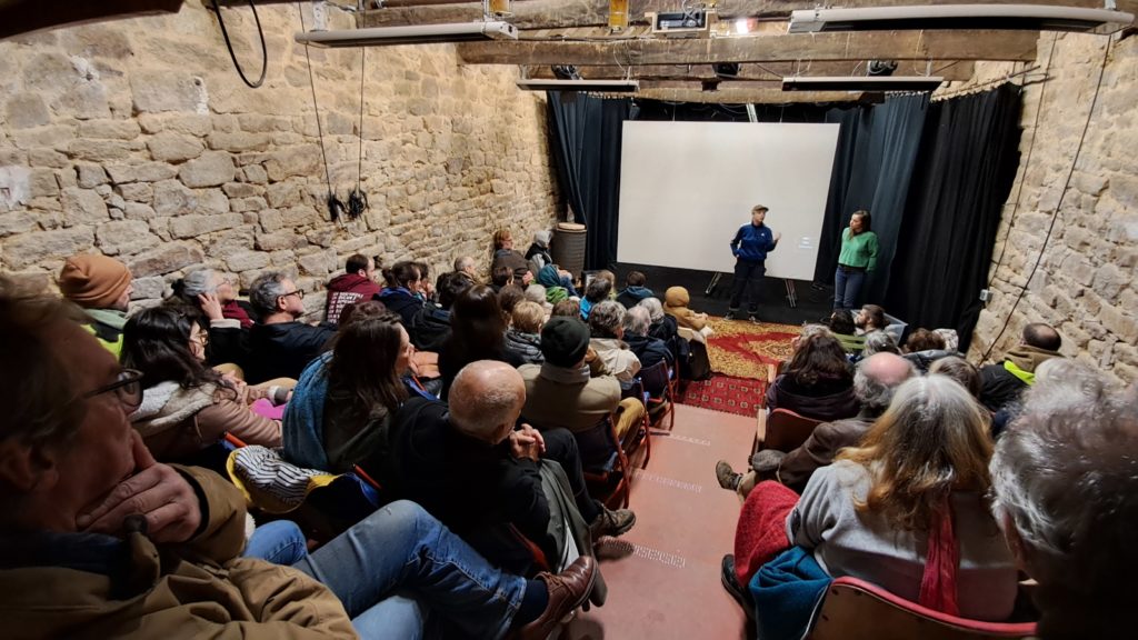 et puis le public à posé des questions et ils ont tenté d'y répondre, et puis on a bu un coup et mangé pleins de bonnes choses et puis ils ont mangé des crêpes, et puis Sylvain a emmené son équipe découvrir le Menez-Hom à la lueur de la pleine lune, ils y ont sans doute frôlé de malicieuses sorcières.